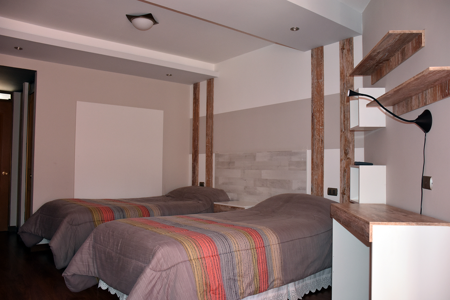 El Hotel cuenta con habitaciones dobles standard, dobles matrimoniales, triples y cuádruples, todas con baño privado y TV (abierta).